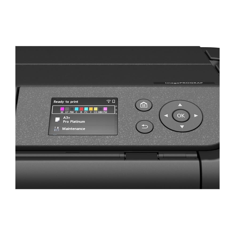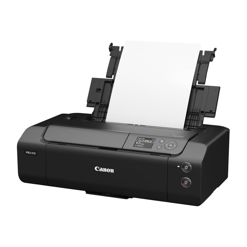 The Canon ImagePROGRAF PRO-310 is a professional inkjet printer designed for demanding photographers and artists who require maximum quality in the A3 format. This model uses the 10-color LUCIA PRO pigment ink system, including Chroma Optimizer and dedicated Matte Black, to deliver an exceptionally wide color gamut, deep blacks, and superior print longevity. The printer supports a maximum print format of A3 (330 mm x 483 mm) with a maximum resolution of 4800 x 2400 dpi. The PRO-310 features dual paper feeders, including a multi-purpose tray for thicker and specialized media. Canon’s L-COA PRO processing engine ensures fast handling of high-resolution data. Connectivity includes Wi-Fi, Ethernet, and high-speed USB. The 3.0-inch color LCD display facilitates control and management. Perfect for fine art prints, professional photographs, and high-quality proofs.