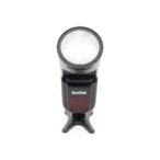 Offering a powerful 76Ws output along with a distinct design, the Godox V1 Flash is an advanced light source with features that clearly reflect the current state of the industry. This flexible on-camera light is distinguished by its round head, which provides soft, smooth light with gradual fall off that augments the flattering output. The head rotates 330 degrees, tilts -7 to 120°, and has a magnetic surface for lightning-fast attachment of Godox's accessory light modifiers. The V1 is powered by a removable 2600mAh lithium-ion battery that will give you up to 480 full-power flashes on a charge, so you don't miss any of the action. Speaking of speed, the V1 recycles to full power in just 1.5 seconds, fast enough to keep up with your subject. It also supports High Speed Sync up to 1/8000 sec, for managing bright backgrounds and shooting with wide apertures, and the V1 supports front and rear-curtain sync.