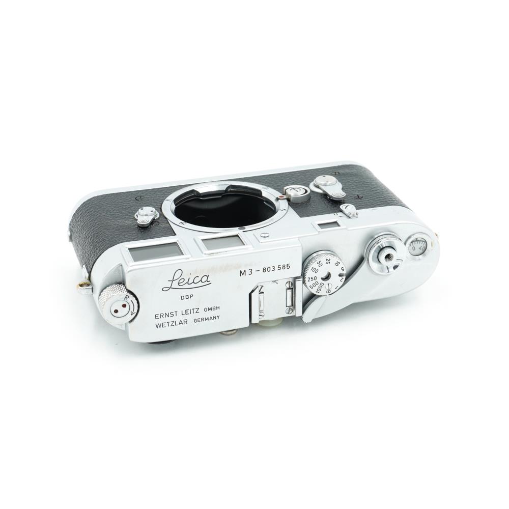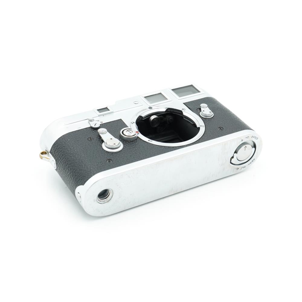 The Leica M3, code 10150 IGEMO, is the archetype of the 35 mm rangefinder camera and the embodiment of German mechanical precision, an icon of photojournalism that shaped modern photography. This specific model is distinguished by its chrome finish and the adoption of the Single Stroke (SS) film advance mechanism, introduced from serial number 919251 in 1958, which replaced the earlier and slower double stroke, optimizing shooting speed and handling for the action photographer. The M3 boasts the largest rangefinder ever integrated into a Leica (0.91x magnification), ideal for precise focusing with normal and telephoto lenses, and features clear and bright framelines for 50 mm, 90 mm, and 135 mm. Equipped with an extremely reliable mechanical cloth focal-plane shutter with speeds from 1/1000 s to 1 s plus B mode, the M3 Single Stroke retains a very high collectible and operational value, with the Leica M bayonet being the starting point of an unrivaled optical ecosystem.
