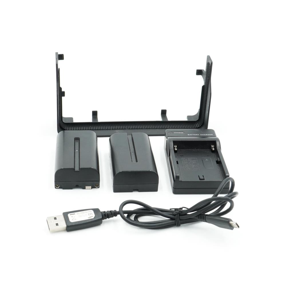 Con 2 batterie NP-F550 e carcabatterie compatibile.