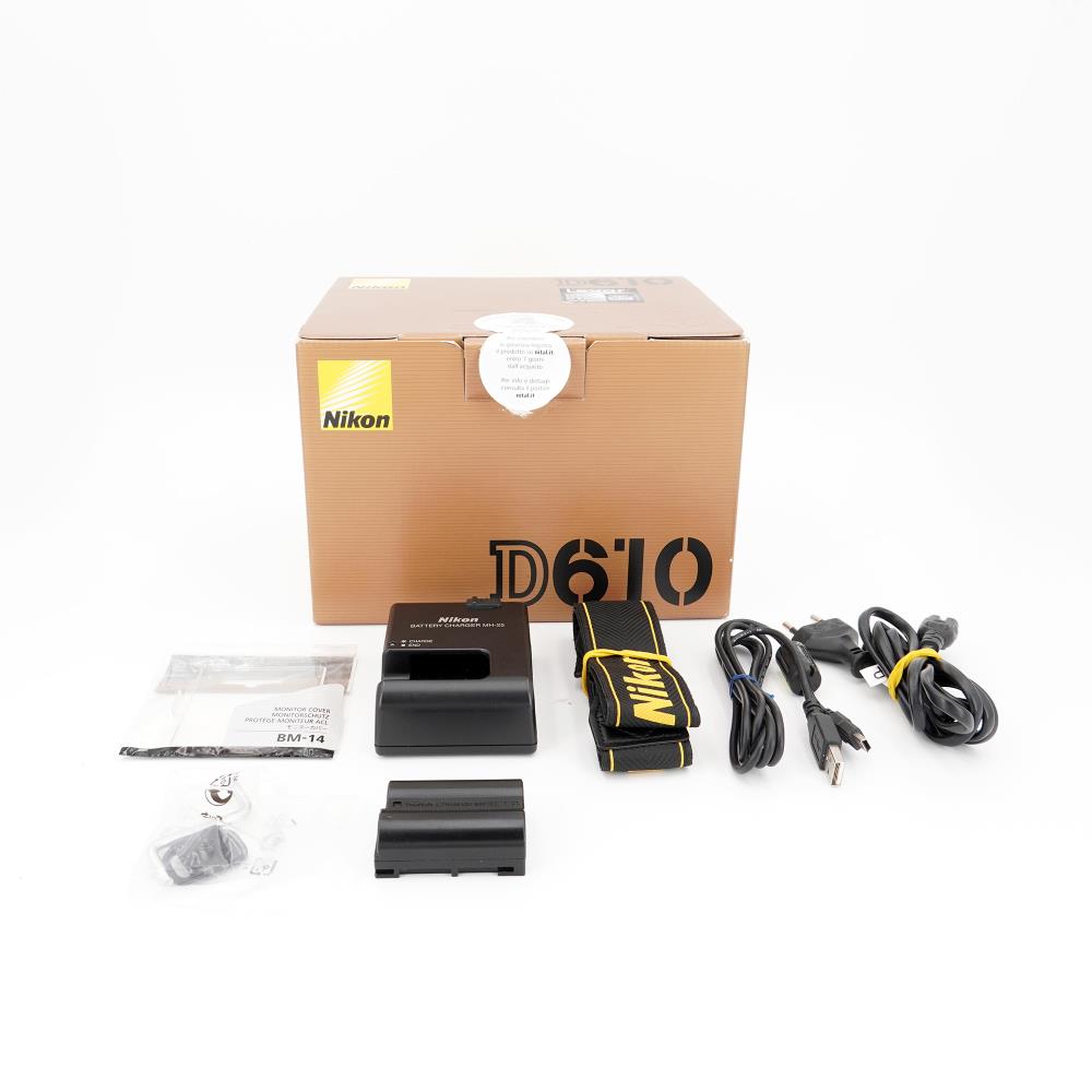 The Nikon D610 DSLR Camera features a full-frame, FX-format 24.3 megapixel CMOS sensor and EXPEED 3 image processor to produce high-resolution still imagery and full HD 1080p video with notable image detail and low-light sensitivity to an expandable ISO 25600. The sensor and processor work together to enable high image quality with a wide dynamic range and high signal-to-noise ratio that produces both smooth color and tonal gradations with low noise levels for enhanced overall clarity.
