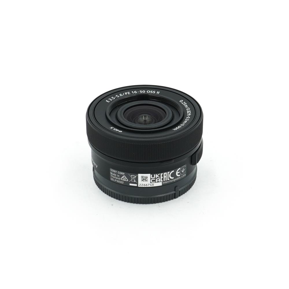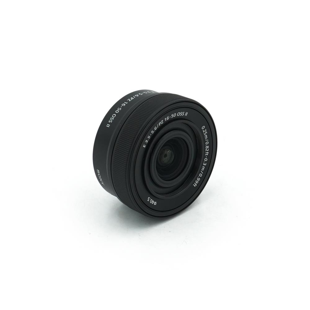 Designed for APS-C mirrorless camera sensors, the black E PZ 16-50mm f/3.5-5.6 OSS II Lens from Sony offers a versatile full-frame equivalent zoom angle of 24-75mm within a compact design. A variable aperture of f/3.5 to 5.6 helps keep the lens's size and weight to a minimum while accommodating most use cases. When the camera is powered off, the lens retracts to just 1.25".