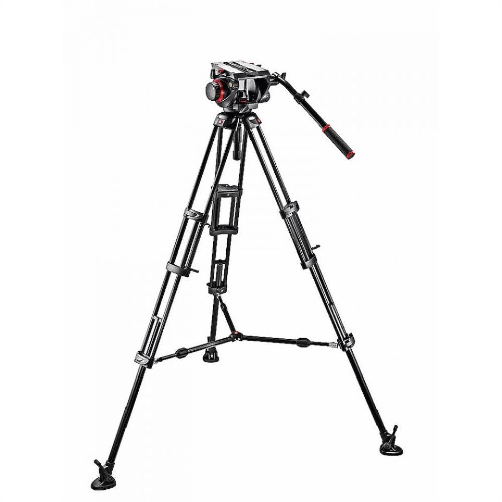 Composto da treppiede video con culla da 100mm Manfrotto 545B e testa video con semisfera da 100mm, con leva telescopica, Manfrotto 509H.