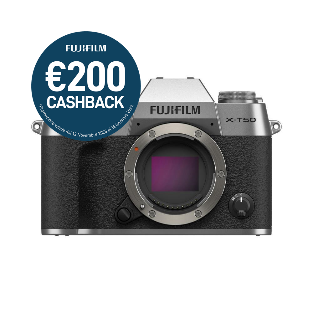X-T50 è caratterizzata da un corpo compatto e leggero che pesa circa 438g e presenta il sensore X-Trans CMOS 5 HR retroilluminato da 40,2 megapixel, il motore di elaborazione delle immagini ad alta velocità "X-Processor 5", e una funzione di stabilizzazione dell'immagine IBIS a 5 assi, fino a 7,0 stop. È un modello versatile che unisce elevate prestazioni e qualità dell'immagine a una grande portabilità. In combinazione con il nuovo obiettivo zoom standard FUJINON XF16-50mmF2.8-4.8 R LM WR può essere utilizzata per la ripresa di immagini in qualsiasi tipologia scatto. Inoltre, X-T50 è munita di ghiera per la selezione immediata delle "Simulazioni Pellicola", una delle funzioni chiave che contraddistinguono FUJIFILM e che consente un'ampia varietà di tonalità di colore. X-T50 incorpora anche un nuovo design dalla forma arrotondata che garantisce al contempo un elevato grip e dimensioni compatte. Inoltre, le sue caratteristiche tecniche le permettono di offrire una qualità d'immagine eccezionale, per una esperienza fotografica ai massimi livelli.