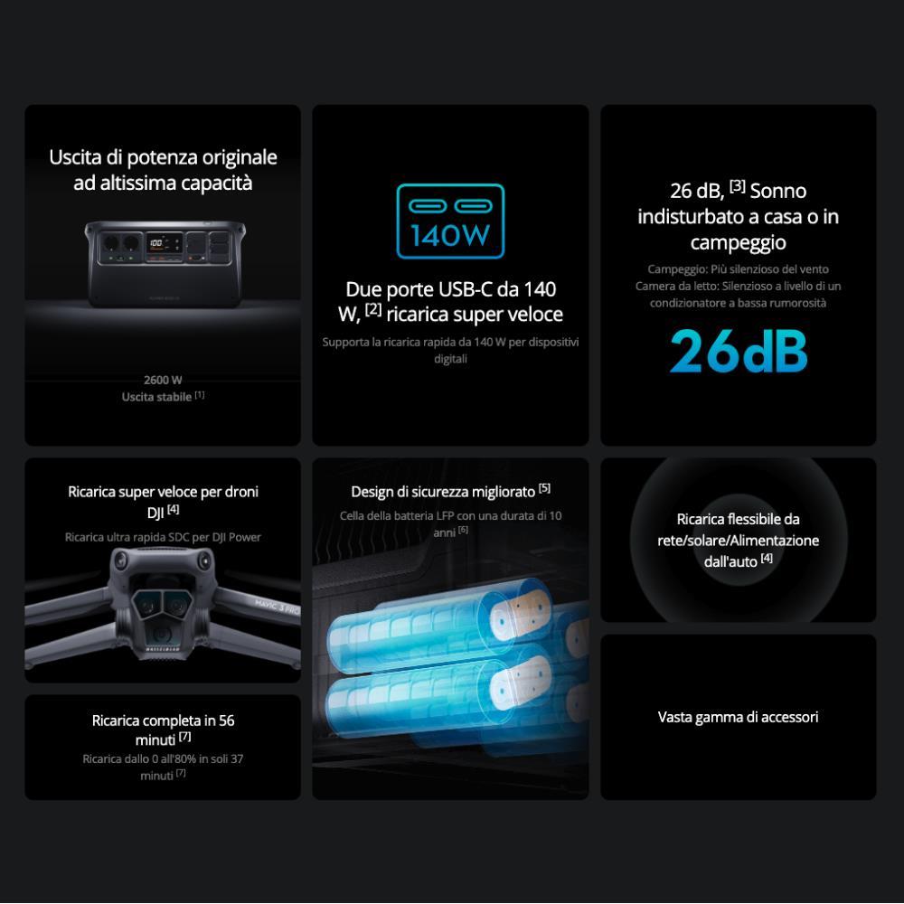 La DJI Power 1000 V2 è l'evoluzione definitiva della stazione di alimentazione portatile, progettata per i professionisti che non tollerano interruzioni. Mantenendo la capacità energetica di 1024 Wh, questa versione eleva la potenza di uscita continua a ben 2600 W, gestendo senza sforzo il 99% degli elettrodomestici e delle attrezzature professionali più esigenti. La vera rivoluzione è nella velocità di ricarica: grazie alla tecnologia SDC proprietaria e al ricaricatore superveloce, la Power 1000 V2 si ricarica completamente in soli 56 minuti e raggiunge l'80% in soli 37 minuti. Le due porte USB-C potenziate erogano ora 140 W ciascuna, supportando la ricarica rapida di laptop ad alta potenza. Con l'integrazione di celle LFP di lunga durata, la modalità UPS ultraveloce per l'alimentazione di emergenza e la possibilità di espansione fino a 11.264 Wh con batterie aggiuntive, la Power 1000 V2 è la soluzione energetica più veloce, sicura e versatile per il backup domestico, il campeggio e la produzione video in remoto.