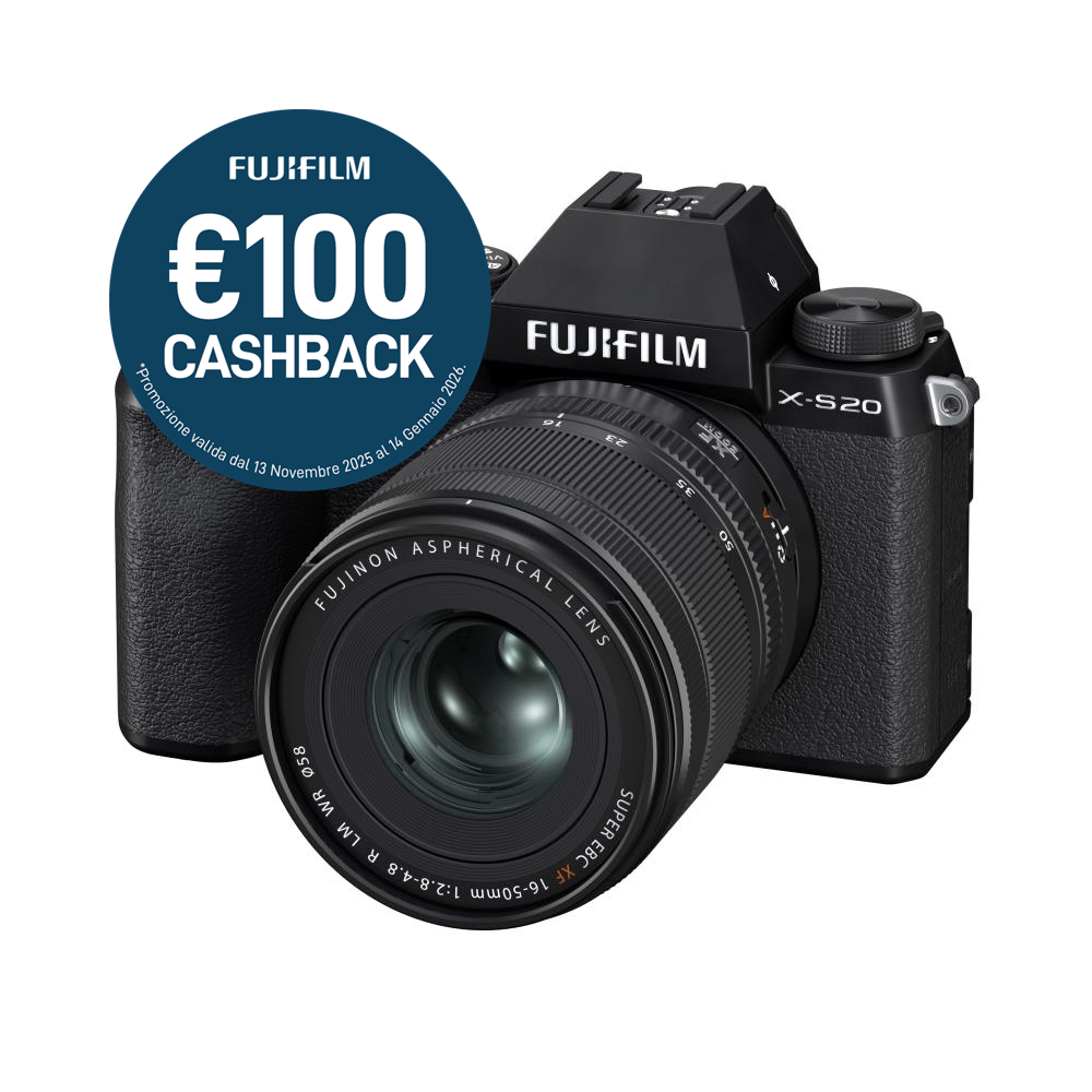 * ATTENZIONE - Potrai usufruire del cashback di € 200 dedicato alla X-T50 acquistando la fotocamera (body o kit) in abbinata ad un XF 23mm f/2, XF 50mm f/2 o un XF 35mm f/2.
