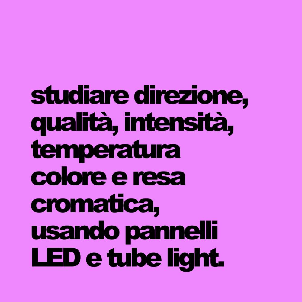 La luce continua ti permette di vedere in tempo reale come la luce costruisce il tuo soggetto. In questa lezione studieremo direzione, qualità, intensità, temperatura colore e resa cromatica (CRI), usando pannelli LED e tube light. Analizzeremo i principali schemi di posizionamento: luce frontale, laterale, a 45°, controluce e loop lighting, per capire come cambia volume, contrasto e ombra. Imparerai a usare diffusori e modificatori per controllare la morbidezza e a regolare la distanza per ottenere precisione nella resa. Alla fine saprai costruire una luce stabile, leggibile e coerente.