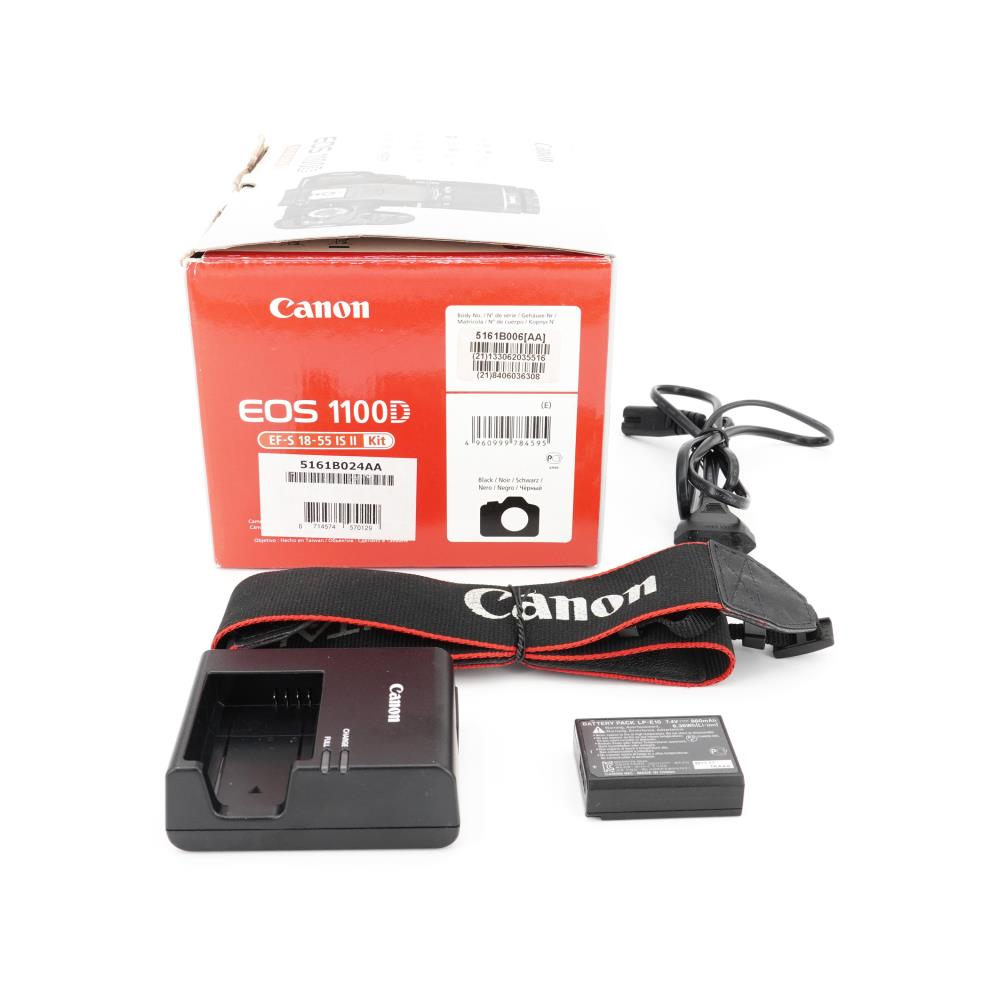 La Canon 1100D è una fotocamera reflex con sensore APS-C (1.6x) da 12.2 megapixels prodotta dal 2011 al 2014 (fuori produzione). La gamma di sensibilità, inclusa estensione, è 100 - 6400 ISO e può scattare a raffica di 2 FPS x 5 RAW / 3 FPS x unlimited JPEG.