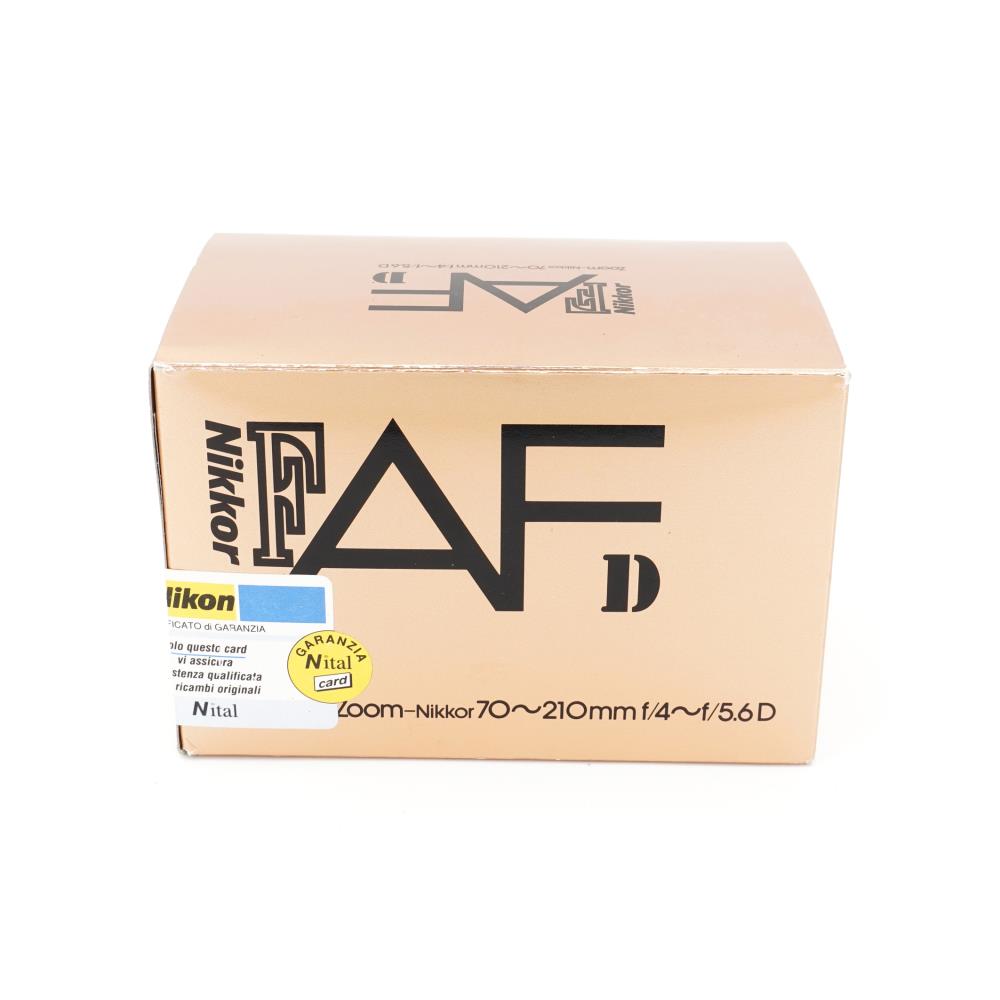 Il Nikon AF 70-210mm f/4-5.6 D è un obiettivo teleobiettivo zoom progettato per il sistema reflex Nikon con innesto F-mount, caratterizzato da un design compatto e una costruzione meccanica prevalentemente metallica. Questa versione identificata dalla lettera D integra un microchip capace di comunicare al corpo macchina la distanza del soggetto, ottimizzando la precisione del sistema esposimetrico Matrix 3D e del lampo flash. Lo schema ottico è configurato per offrire una resa nitida e un contrasto bilanciato su tutta l'escursione focale, con un'apertura massima variabile che passa da f/4 a 70mm fino a f/5.6 alla massima estensione di 210mm. Il sistema di zoom è di tipo a scorrimento lineare, comunemente definito a pompa, che permette una variazione rapida della focale con un unico movimento della mano. La velocità dell'autofocus è notevolmente superiore rispetto alla versione non-D precedente, grazie a una riduzione del rapporto di demoltiplicazione interna che richiede meno rotazioni del motore della fotocamera per raggiungere la messa a fuoco. L'obiettivo mantiene la ghiera dei diaframmi manuale, garantendo la compatibilità con le fotocamere reflex analogiche e digitali dotate di accoppiamento meccanico.